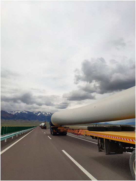 2019年5月公司承运中国电建水利水电第四工程局有限公司,中国新疆霍尔果斯口岸至哈萨克斯坦札纳塔斯100MW风电项目,货物发运运行历时2个多月,累计发车共22余次,克服装载、加固及天气重重困难,圆满完成此次运输任务,顺利将风机设备安全运抵至目的地。